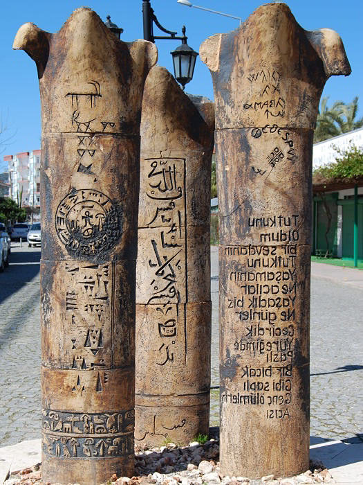 anıtların üzerindeki yazıların Türkçe şarkı sözlerinin tersten yazılışı